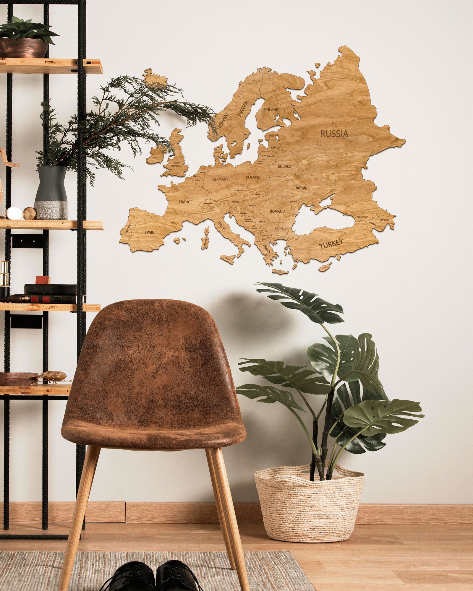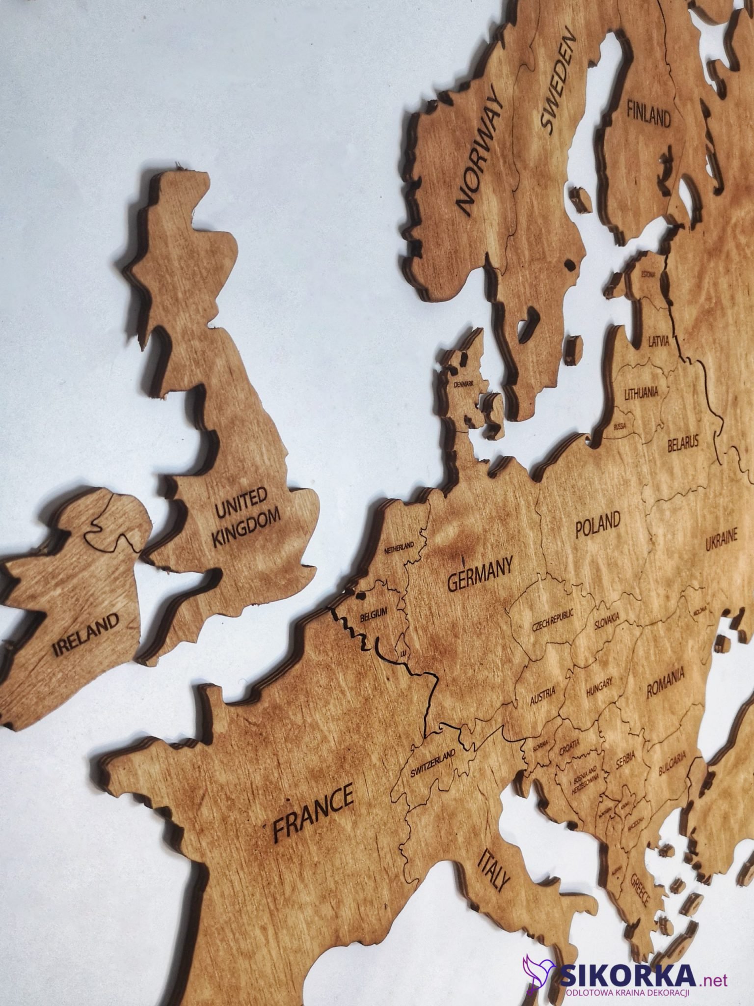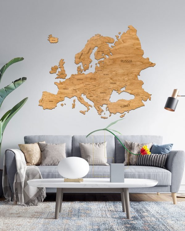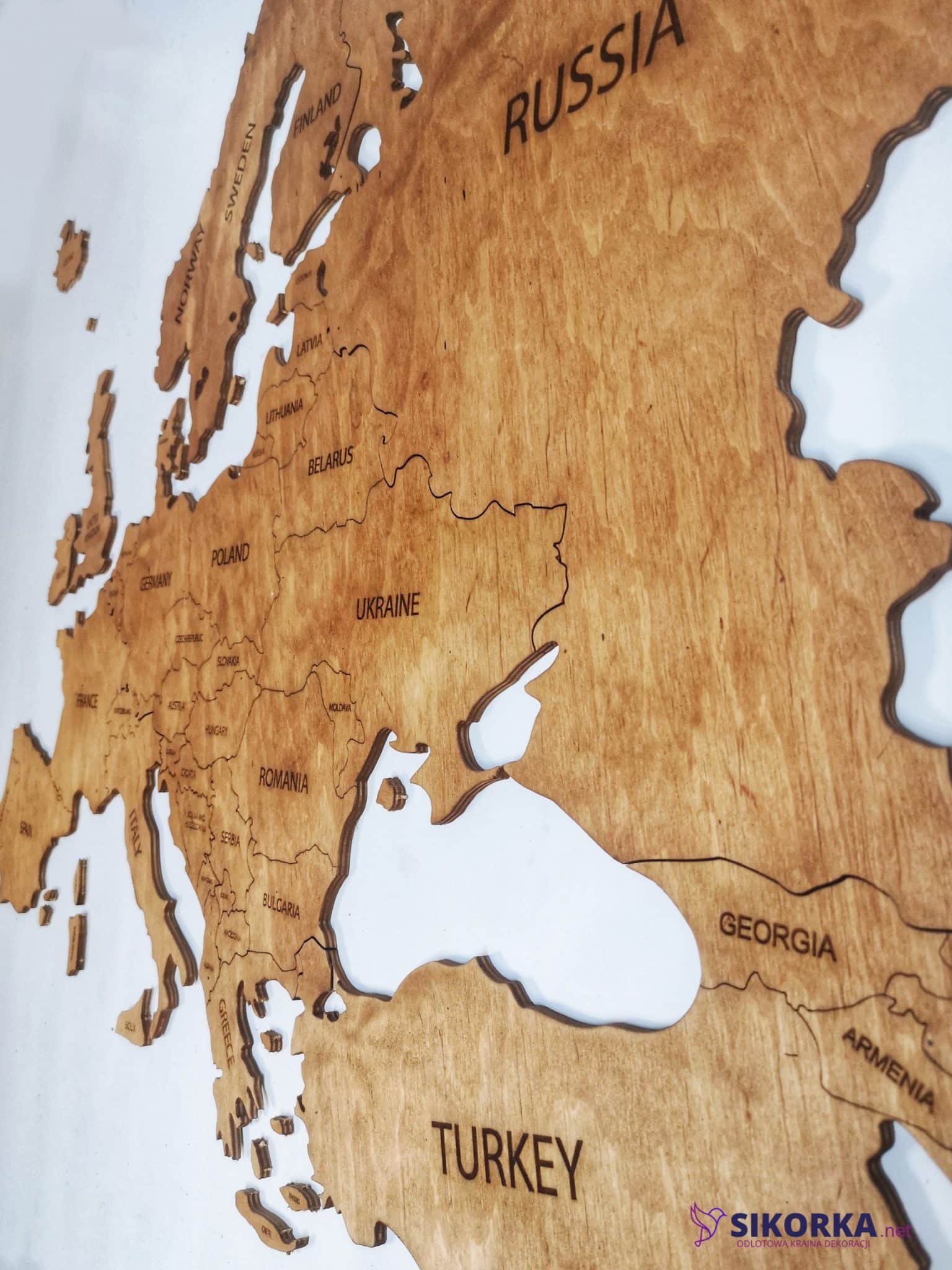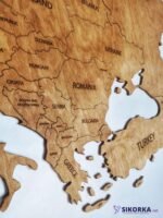 Our Wooden Map of Europe is very easy to assemble. After hanging the template, all you need to do is tear out individual parts marked with dotted dots, e.g. a continent or an island, and replace them with a wooden element of the world map. For gluing individual elements, it is worth using a solid glue, e.g. from Mamut.