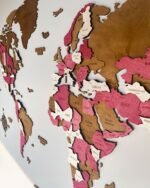 Wooden 3D World Map | PINKY” is a unique addition to your interior that combines three unusual colors: Pinky, Oak and Natural. This 3D world map has been carefully crafted from the highest quality wood, giving it a unique, natural look. The juicy Pinky shade, warm Oak and delicate Natural hue create a harmonious composition that adds elegance to any room.