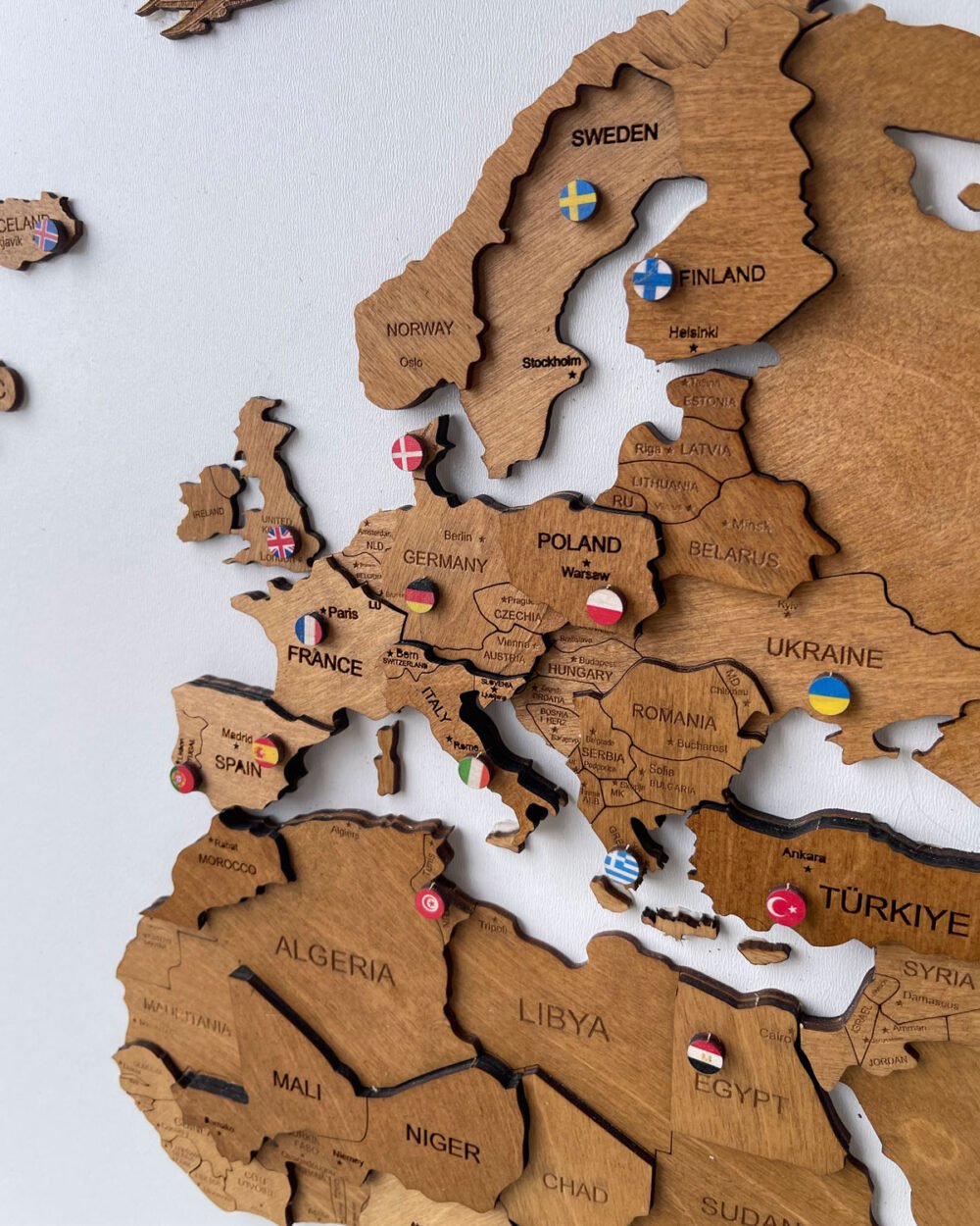 Our products are manufactured in our company in Poland from natural recyclable materials. We invite you to purchase and mark your travels on our wooden world map.
