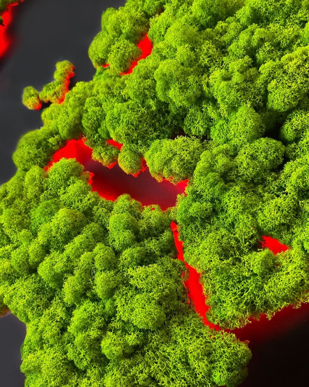 The map made of hornwort moss with LED illumination is a novelty in our offer. The LED map with hornwort moss is a combination of closeness to nature and modern technology. The LED map with hornwort moss is made of the highest quality hornwort moss.