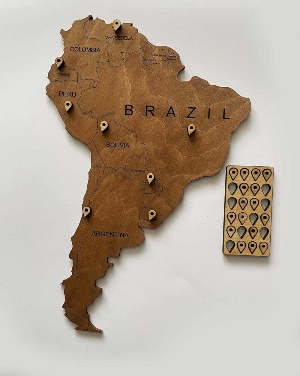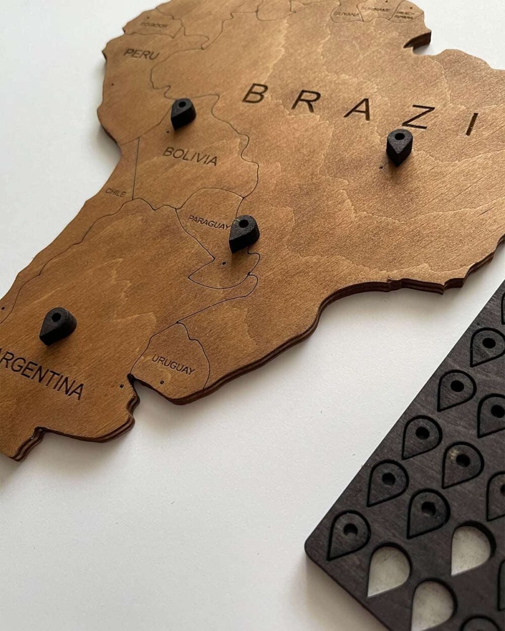 A set of 24 wooden markers is an inseparable element of wooden World Maps. The marker allows you to mark places visited or plan further trips.