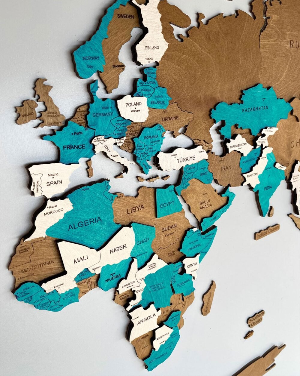 Wooden 3D World Map | LAZUR is not only a wall decoration, but also a source of inspiration and a unique way to enhance your interior design. Its unique design and attention to detail will make your room even more attractive. Add a touch of color and elegance to your home by choosing this map as a unique design element. It’s not just a decoration, it’s a real work of art that attracts attention and creates a unique mood in your interior.